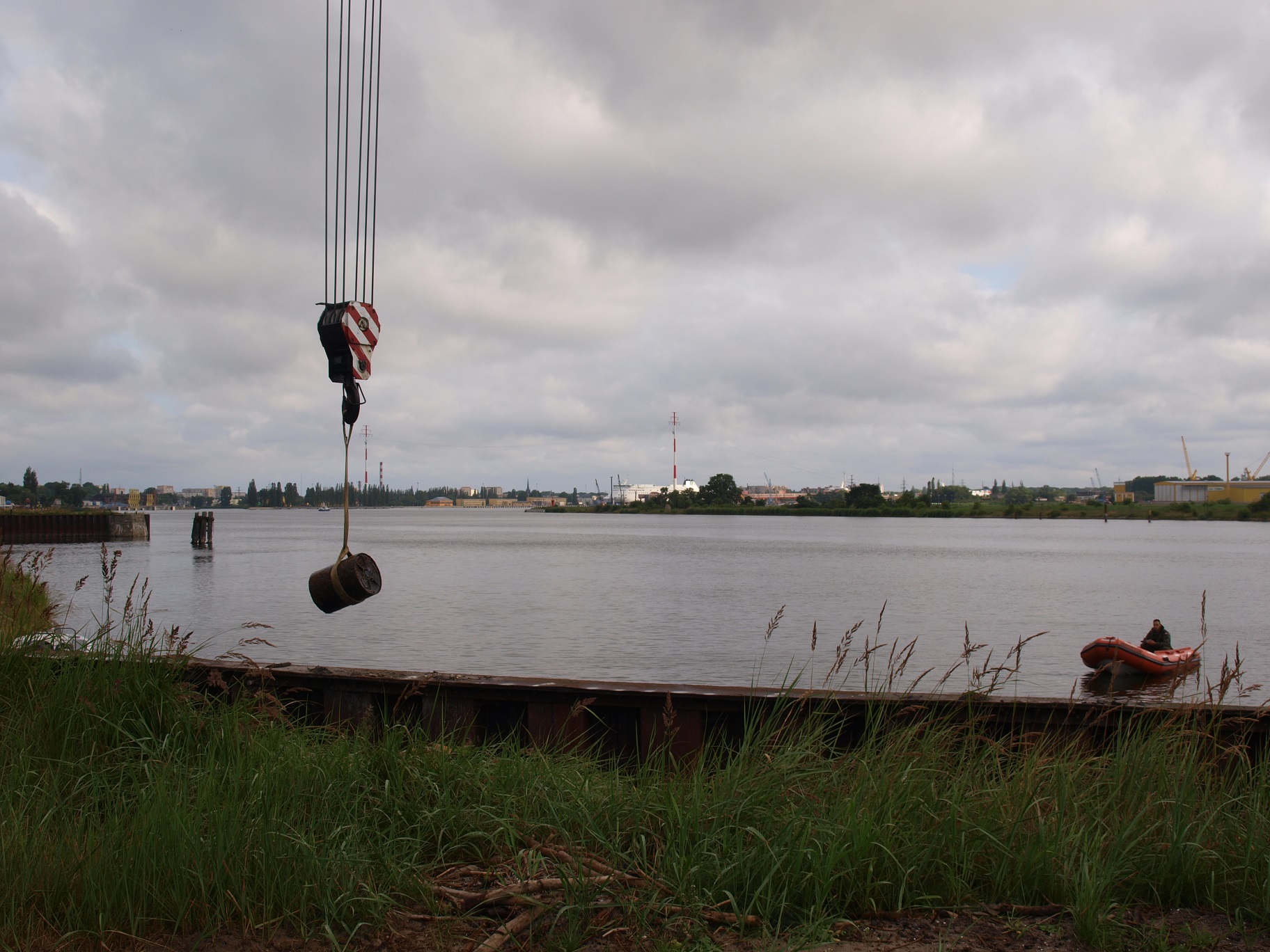 Przedmioty niebezpieczne zostały wykryte przez pracowników wykonujących prace hydrotechniczne przy nabrzeżu na zlecenie Urzędu Morskiego. Natychmiast powiadomiono służby dyżurne Marynarki Wojennej. Do akcji skierowano nurków – minerów z 12. Dywizjonu Trałowców ze Świnoujścia oraz saperów z Patrolu Rozminowania z 8. Batalionu Saperów z Dziwnowa. Po przeprowadzeniu podwodnego rekonesansu stwierdzono w wodzie obecność m.in. amunicji oraz bomb głębinowych typu DM-11. Wszystkie znaleziska pochodziły z okresu II wojny światowej.
