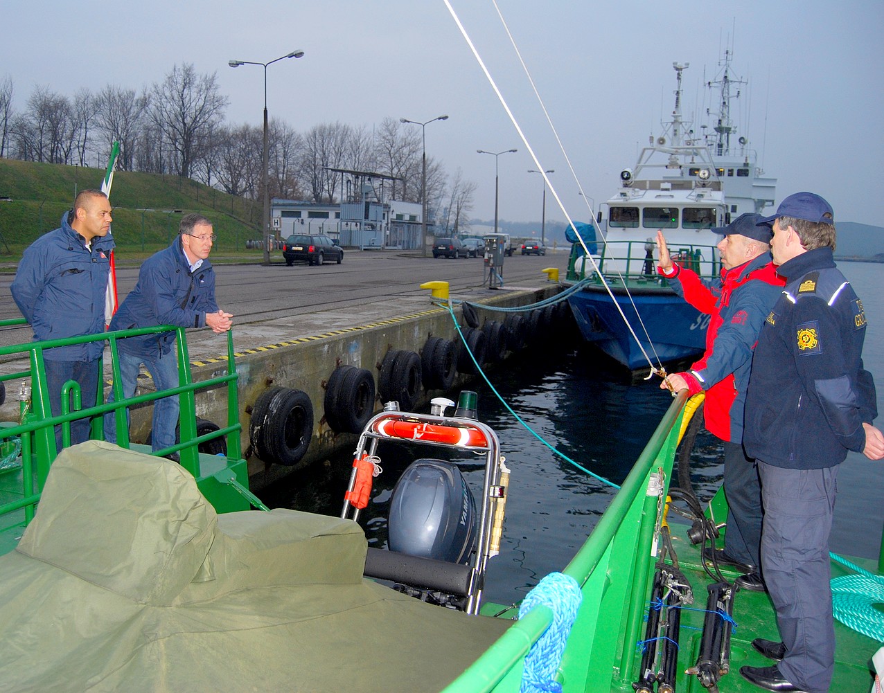 Delegacji Królestwa Niderlandów przewodniczył Ed H. Veen, szef Straży Przybrzeżnej Królestwa Niderlandów. W Komendzie MOSG kontradm. SG Piotr Stocki zapoznał gości z systemem ochrony granicy państwowej, prowadzonym nadzorem nad polskimi obszarami morskimi, strukturą organizacyjną oraz wyposażeniem technicznym MOSG.