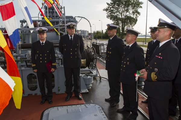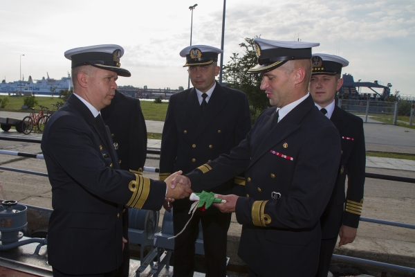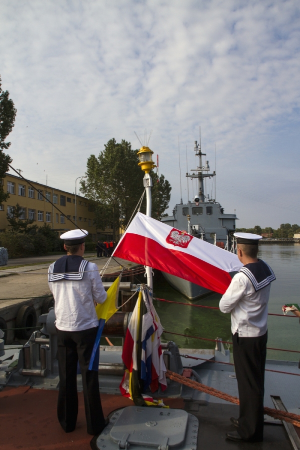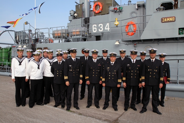 Uroczystość objęcia obowiązków dowódcy okrętu odbyła się zgodnie z marynarskim ceremoniałem. Obecni byli dowódca dywizjonu, dowódcy okrętów grupowych oraz załoga okrętu. W trakcie uroczystości komandor porucznik Krzysztof Szumlicki - dowódca 12. Dywizjonu Trałowców wręczył nowemu dowódcy „Znak Dowódcy Grupy Jednostek Pływających - Dowódcy Okrętu” symbol sprawowania władzy nad grupą okrętów, okrętem i jego załogą. Znak ten powiewać będzie na maszcie Jamna przez cały okres dowodzenia okrętem przez komandora podporucznika Krzysztofa Miecznikowskiego. W trakcie uroczystości nowy dowódca okrętu podziękował dowódcy dywizjonu za powierzenie mu odpowiedzialnej funkcji dowódczej oraz za zaufanie jakim go obdarzył.