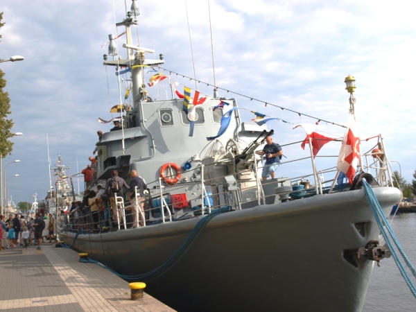 Trałowiec ORP Drużno i kuter transportowy 853 z 8. Flotylli Obrony Wybrzeża, gościły w miniony weekend (20-23 sierpnia) w Darłowie. Okręty stacjonowały w porcie w związku z rocznicą 20 lat istnienia Gdyńskiej Brygady Lotnictwa MW oraz 52 lat obecności Lotnictwa MW w Darłowie. W związku z jubileuszem na lotnisku wojskowym urządzono rodzinny piknik lotniczy.