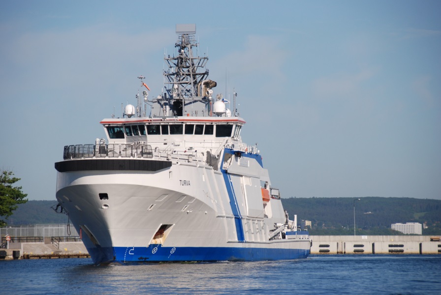 Okręt Straży Granicznej Finlandii Turva jest nowoczesnym patrolowcem napędzanym olejem napędowym i ciekłym gazem LNG. Ma 2165 ton wyporności, blisko 100 metrów długości, przeszło 17 metrów szerokości, posiada „rozkładane” lądowisko dla śmigłowców. Jego stała załoga składa się z 42 osób, ale na swój pokład, w razie konieczności, może przyjąć nawet 400 osób.