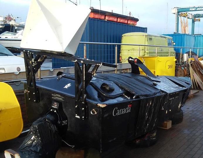 W poniedziałek, 21. grudnia br., do Akademii Marynarki Wojennej im. Bohaterów Westerplatte w Gdyni (AMW) wpłynęło zgłoszenie, iż na pokładzie kutra Jas 61 znajduje się wyłowiony przez jego załogę "dron morski". Po wstępnych analizach materiału fotograficznego wytypowano obiekt, jako bezzałogową jednostkę nawodną (ang. Unmanned Surface Vehicle - USV) produkcji kanadyjskiej typu Hammerhead.
