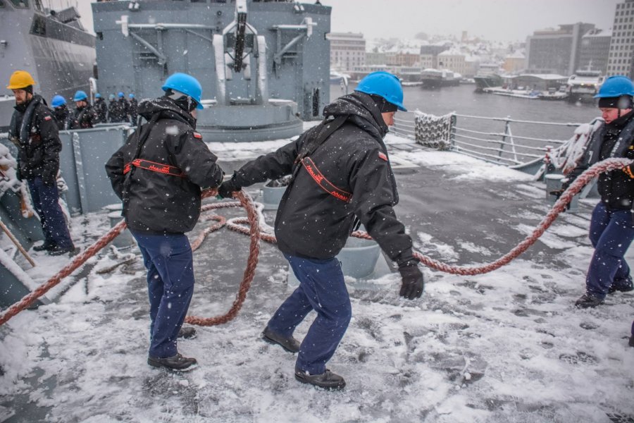 200-osobowa załoga okrętu doskonali swoje umiejętności z zakresu koordynacji, współdziałania i dowodzenia oraz przeprowadzania symulacji walki z okrętami podwodnymi. Wszystko w skrajnie niskich temperaturach, sztormowych warunkach i utrudnieniach związanych z manewrowaniem w fiordach.