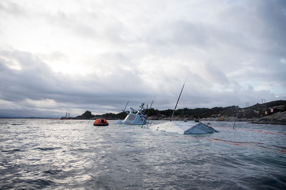 Norweskie Siły Zbrojne potwierdzają, że kilka lin zabezpieczających fregatę KNM Helge Ingstad zerwało się i okręt niemal całkowicie zatonął.