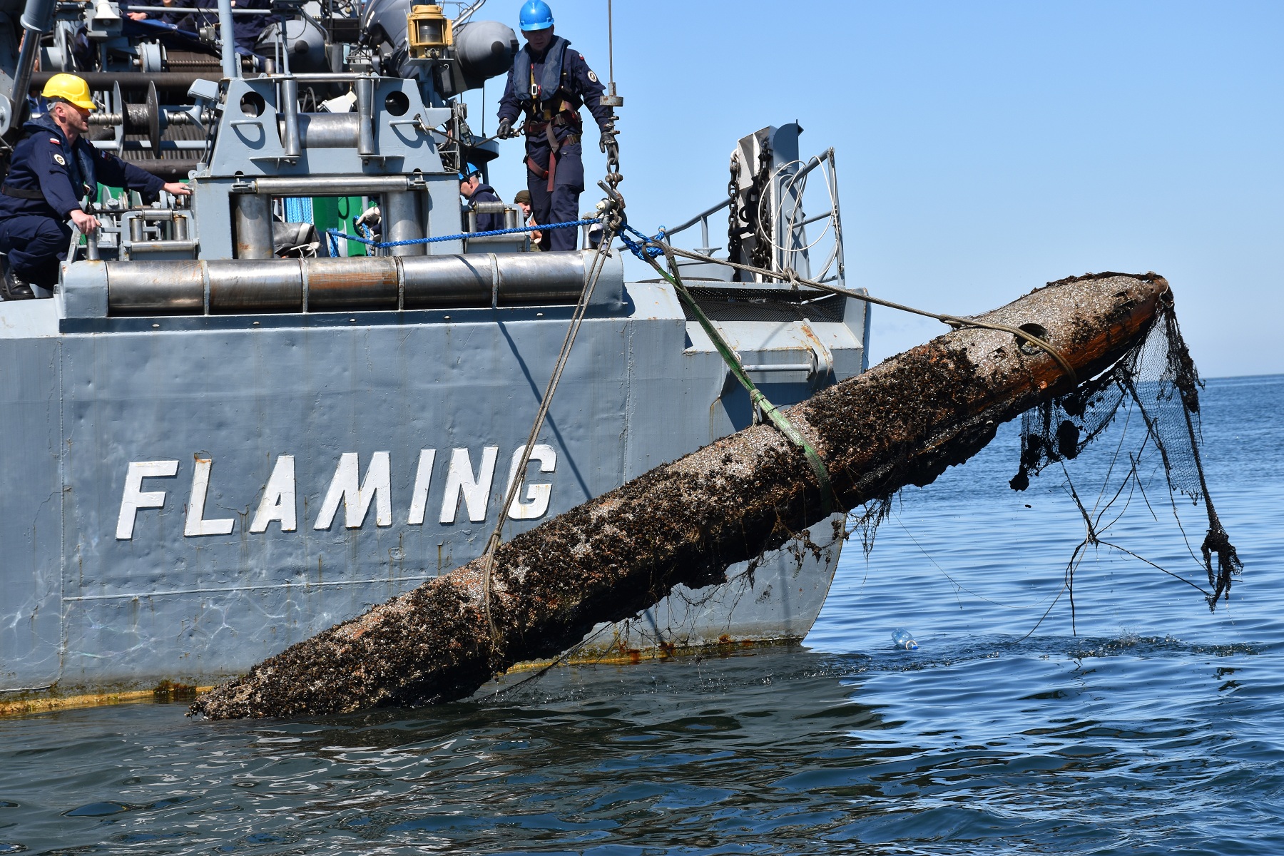 W minionym tygodniu, gdyńskie siły 8. Flotylli Obrony Wybrzeża: Grupa Nurków Minerów oraz załoga okrętu ORP Flaming z 13. Dywizjonu Trałowców przeprowadziły operację wydobycia trzech torped z okresu II wojny światowej. Tym razem zgłoszenie czterech dużych obiektów otrzymano z Urzędu Morskiego w Gdyni. W wyniku przeprowadzonego rekonesansu oraz po analizie zebranego materiału okazało się, że trzy obiekty to torpedy ćwiczebne długości ok. 8 metrów. Czwarty obiekt okazał się rurą stalową. Torpedy znajdowały się ok. 500 metrów od portu Hel i zalegały na głębokości blisko 30 metrów.