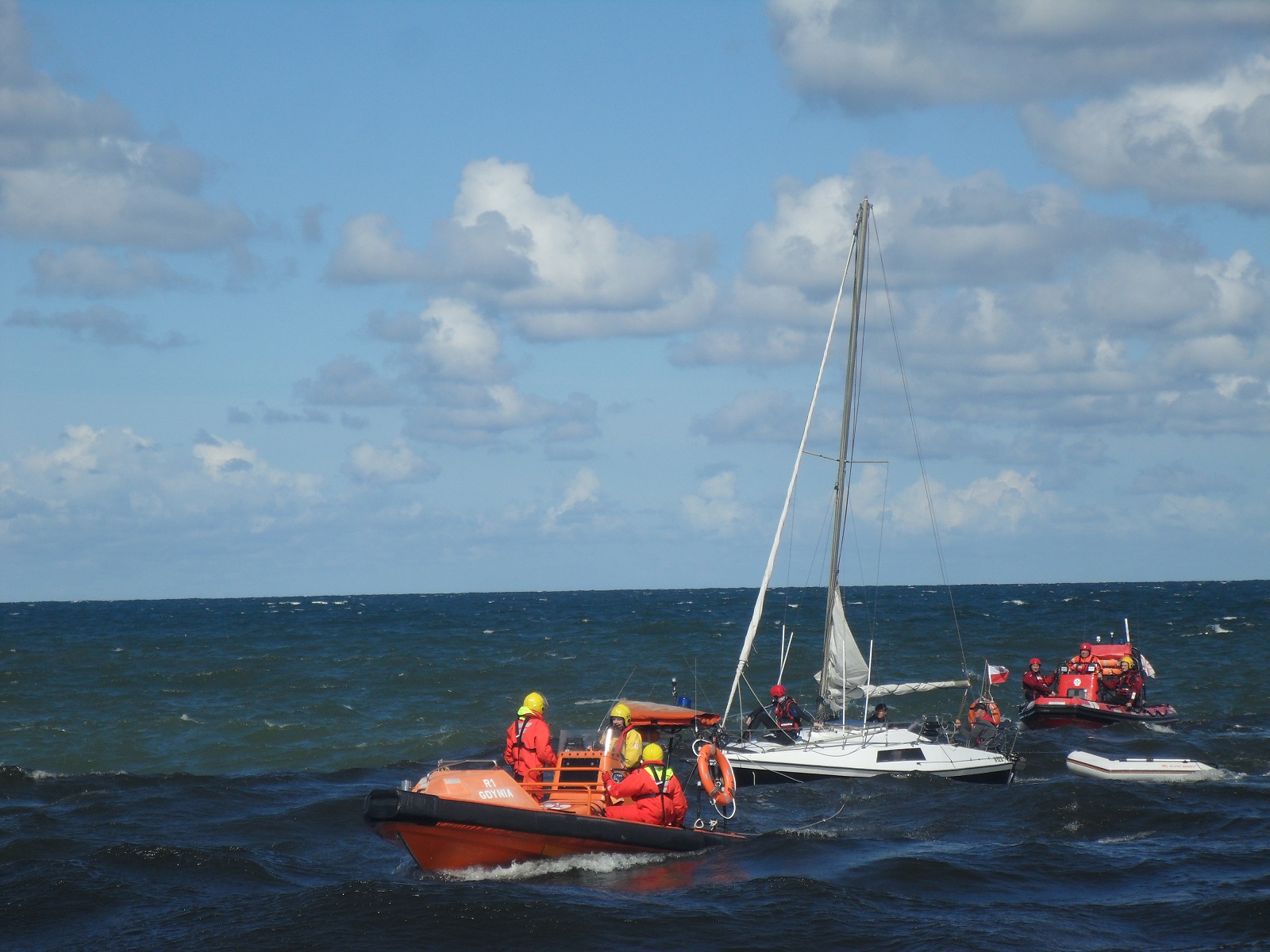 Do akcji skierowano dwie motorówki - R-16 z Brzegowej Stacji Ratownictwa SAR w Ustce i R-1 ze statku ratowniczego Orkan. Ratownicy najpierw przejęli z pokładu trójkę dzieci, które odwieziono na ląd a później bezpiecznie odholowali jacht do portu w Ustce.