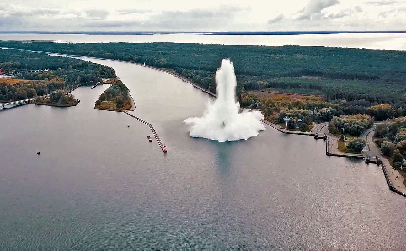 Nad powierzchnią kanału pojawił się ok. 100-metrowy słup wody, według relacji świadków wybuch był przez chwilę odczuwalny m.in. na wyspie Karsibór.