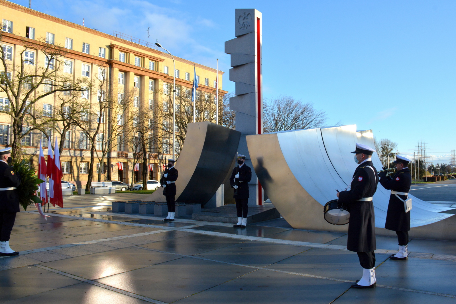 Dla podkreślenia rangi obchodów 102. rocznicy utworzenia morskiego rodzaju Sił Zbrojnych 27 listopada, na wszystkich okrętach MW podniesiona została wielka gala banderowa. Przy Pomniku Polska Morska na Skwerze Kościuszki delegacja MW w składzie: dowódca COM-DKM wiceadm. Krzysztof Jaworski, dowódca 3. Flotylli Okrętów kontradm. Mirosław Jurkowlaniec, dowódca 8. Flotylli Obrony Wybrzeża kontradm. Piotr Nieć oraz przedstawiciel Inspektoratu Marynarki Wojennej kmdr Jarosław Skrzyszewski złożyła wiązankę kwiatów.
