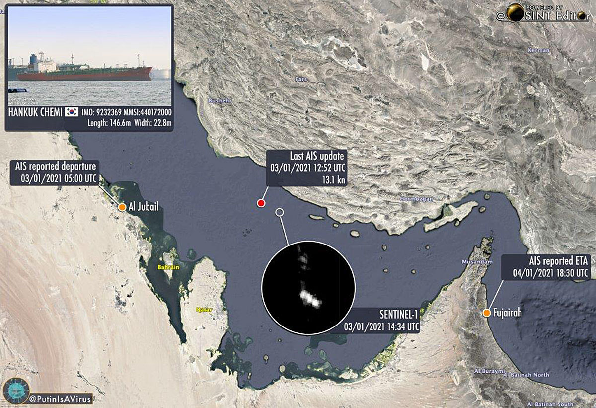 Wcześniej władze w Teheranie potwierdziły zatrzymanie chemikaliowca Hankuk Chemi (nr IMO 9232369, zbudowany w 2000 r., nośność 17 427 t, GT 9797) z powodu "zanieczyszczenia olejem" wód Zatoki Perskiej i cieśniny Ormuz.