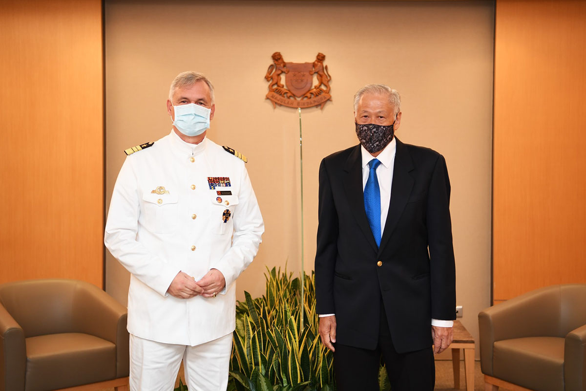 Wiceadmirał Schoenbach podkreślił, że wizyta Bayern ma być sygnałem dla Chin i początkiem stopniowego zwiększania niemieckiej obecności wojskowej w regionie. Miałaby się ona rozpocząć od 2023 roku. "Następnym razem chcemy wysłać dwie jednostki, fregatę i okręt pomocniczy" - powiedział dowódca niemieckiej marynarki, cytowany przez singapurski dziennik "Straits Times". Schoenbach nie wykluczył przy tym, że kolejny okręt przepłynie przez Cieśninę Tajwańską, która oddziela komunistyczne Chiny od demokratycznego Tajwanu, uważanego przez władze w Pekinie za zbuntowaną prowincję (na zdjęciu poniżej - dowódca Deutsche Marine, wiceadmirał Kay-Achim Schönbach i minster obrony Singapuru dr Ng Eng Hen w siedzibie singapurskiego ministerstwa obrony).
