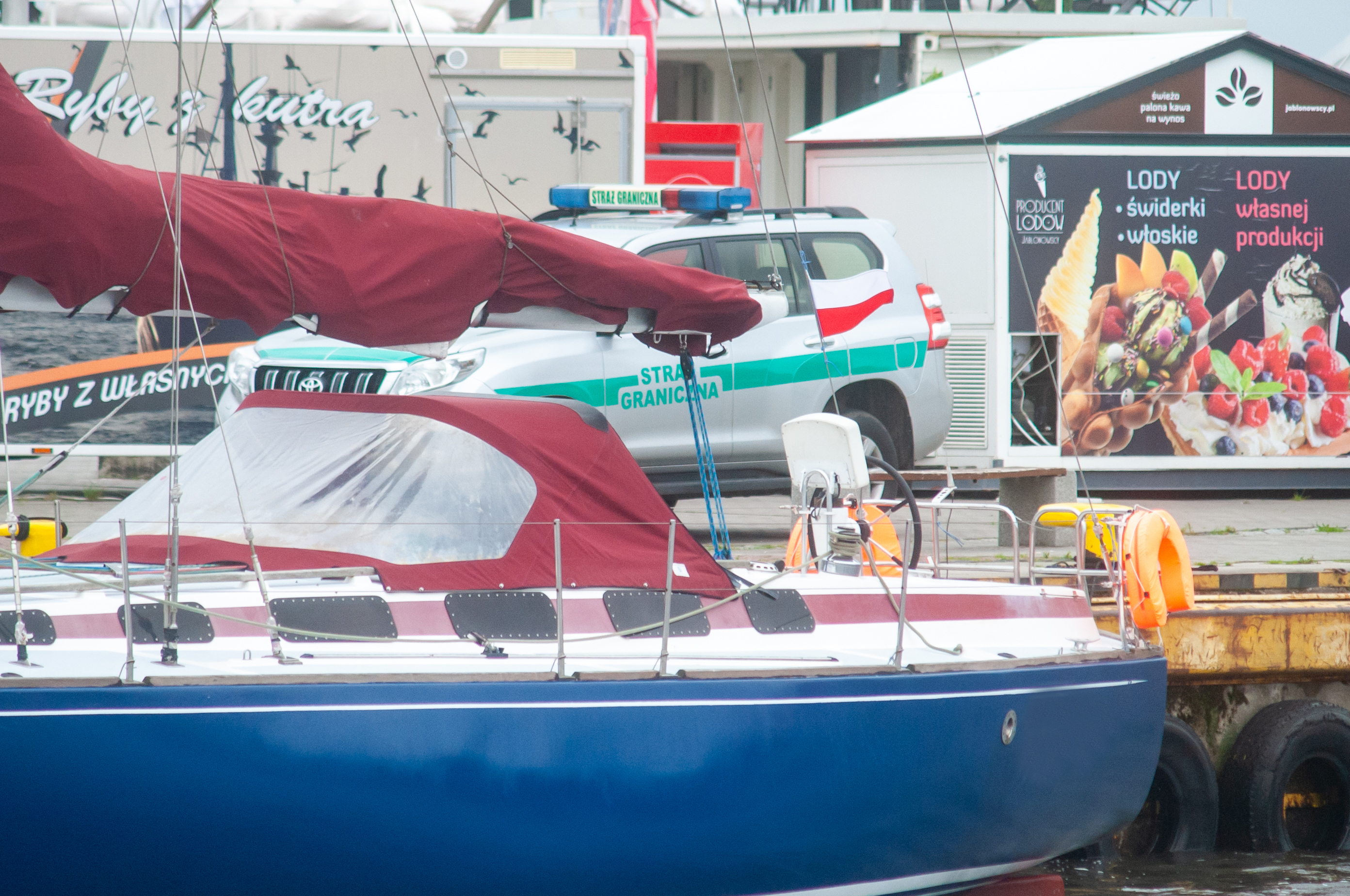 Jacht, na którym żeglowało dwóch obywateli Federacji Rosyjskiej, zacumował w usteckim porcie morskim. Żeglarze nie mogą zejść na ląd, bo ich dane nie znajdują się w katalogu osób uprawionych do wjazdu do Polski. Komendant Placówki Straży Granicznej w Ustce wydał decyzję odmową w tej sprawie. Jacht jest cały czas monitorowany przez strażników granicznych z Ustki.