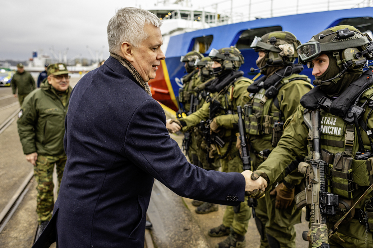 Wizytę rozpoczęto od złożenia meldunku Ministrowi Spraw Wewnętrznych i Administracji i wprowadzenia delegacji na pokład SG-301 przez kmdr. SG Wojciecha Heninborcha Zastępcy Komendanta Morskiego Oddziału SG. Głównym tematem rozmów było bezpieczeństwo granic i infrastruktury krytycznej.