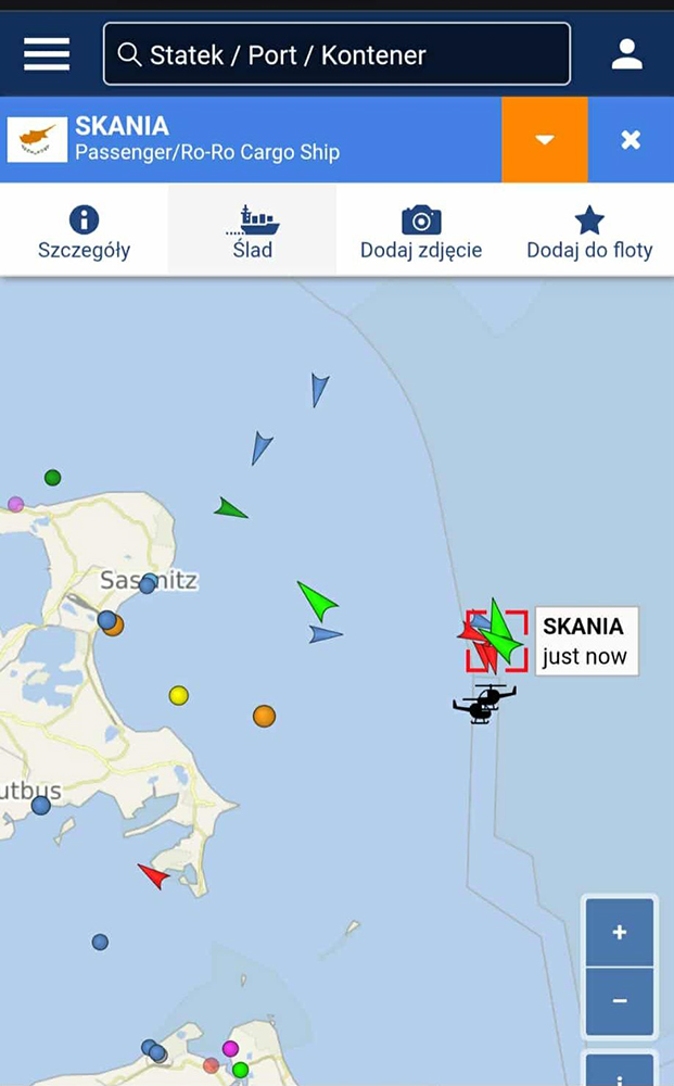 W akcji brał udział również inny prom należący do Unity Line - Polonia, który płynie w kierunku Szwecji.