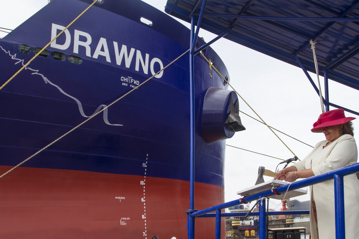 W poniedziałek, 2 października 2023 r., w Gdańskiej Stoczni Remontowej SA miała miejsce skromna (bez udziału bardzo szerokiego grona gości), ale miła i zorganizowana z godną oprawą uroczystość - nadanie imienia statkowi Polskiej Żeglugi Morskiej - Drawno.