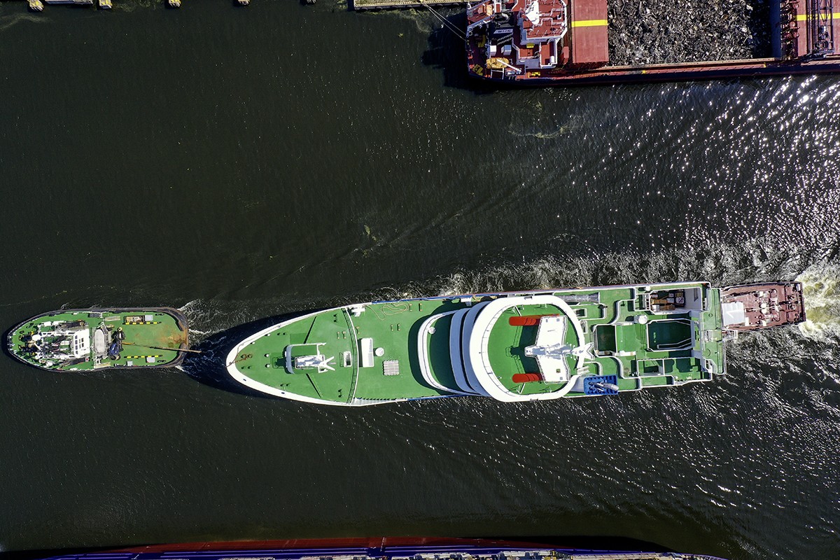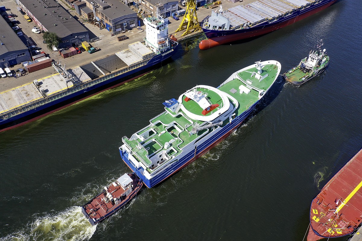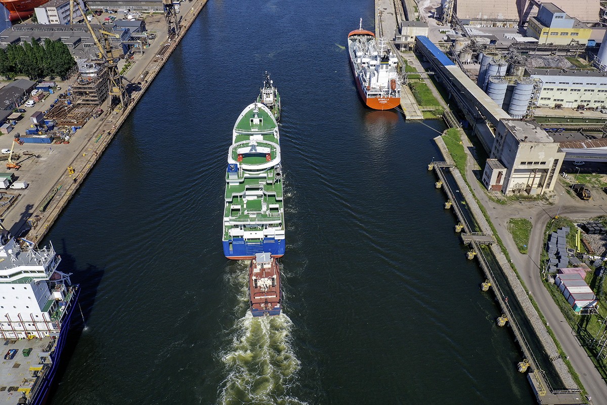 Zwodowany 25 lipca br. kadłub statku o numerze budowy 490 opuścił dzisiaj gdańską stocznię Karstensen Shipyard Poland i z pomocą holownika En Avant 20 płynie w kierunku duńskiego Skagen, gdzie będą kontynuowane prace wyposażeniowe.