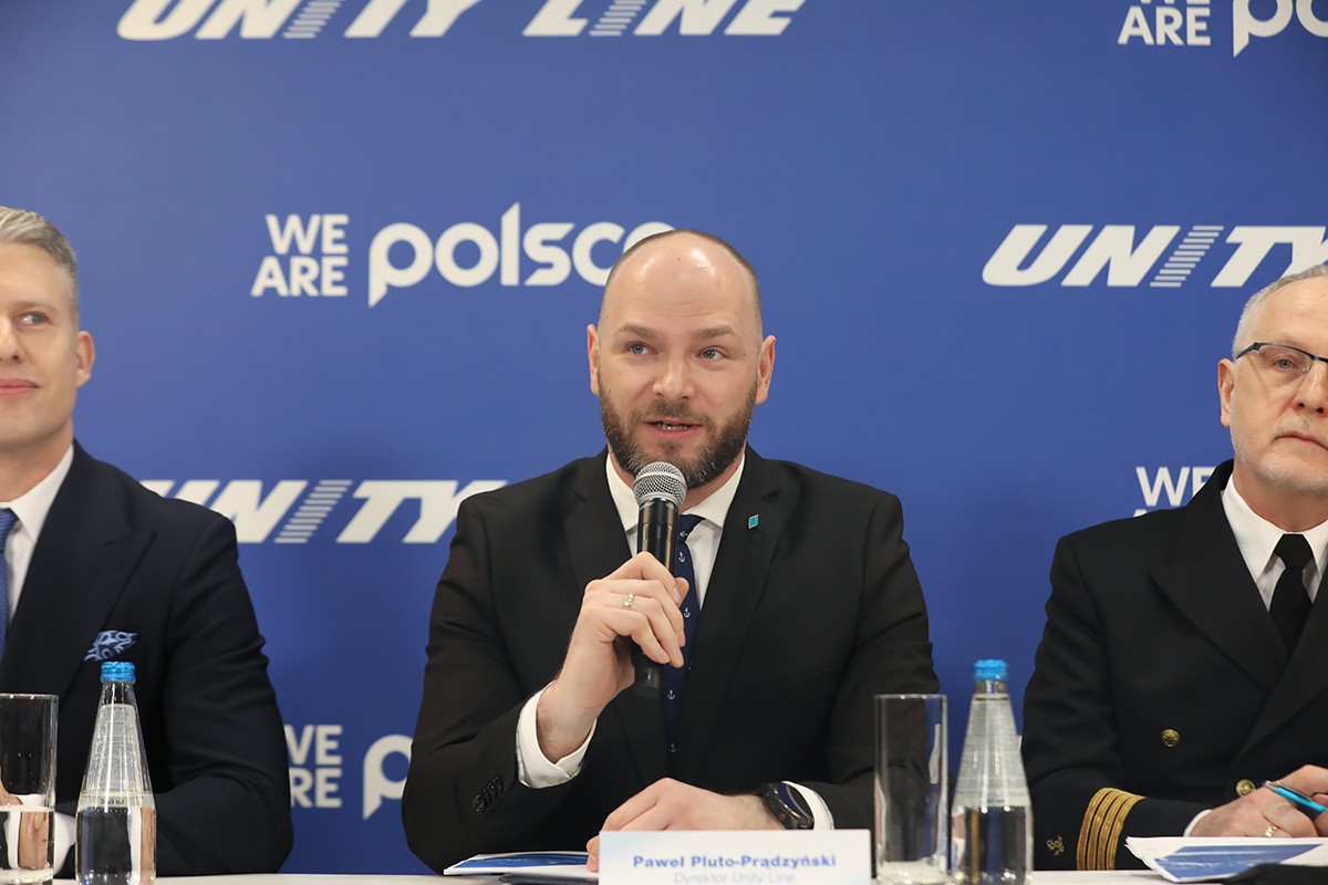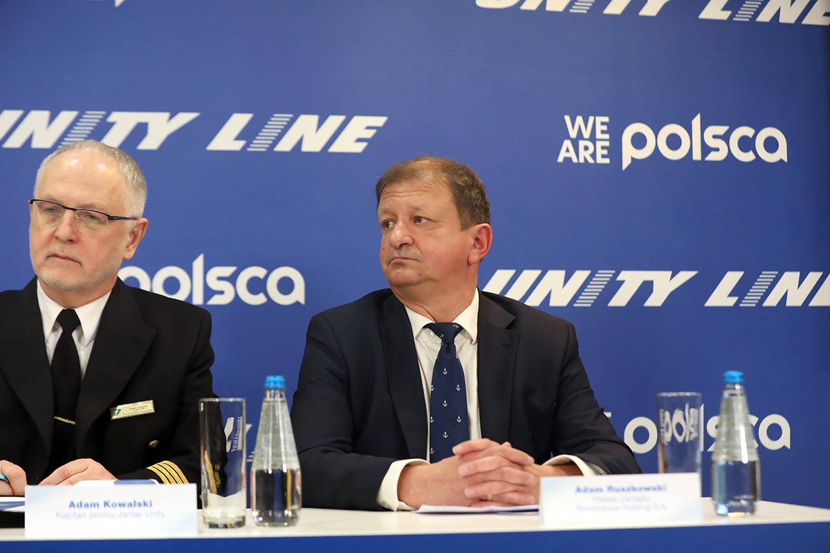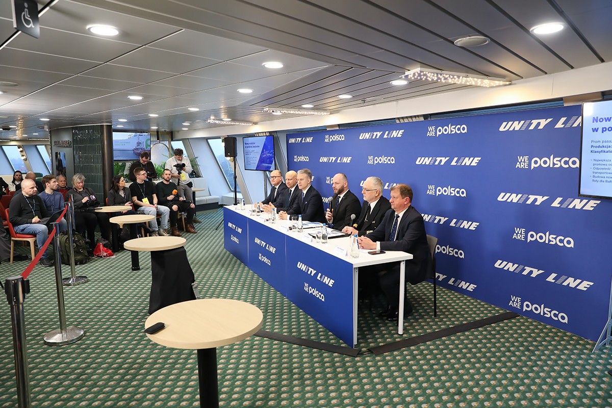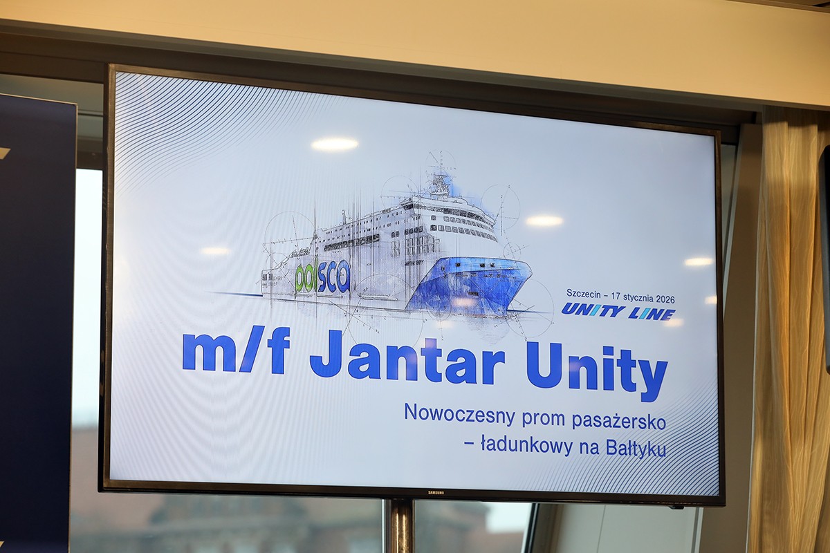 Największy prom, zbudowany w polskiej stoczni i dla polskiego armatora. O szczegółach tego projektu mówiono podczas konferencji prasowej na pokładzie Jantara Unity w Szczecinie (17.01.2026 r.)
