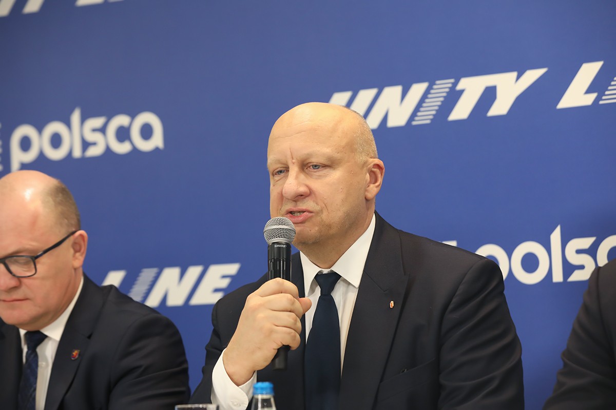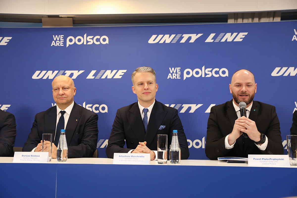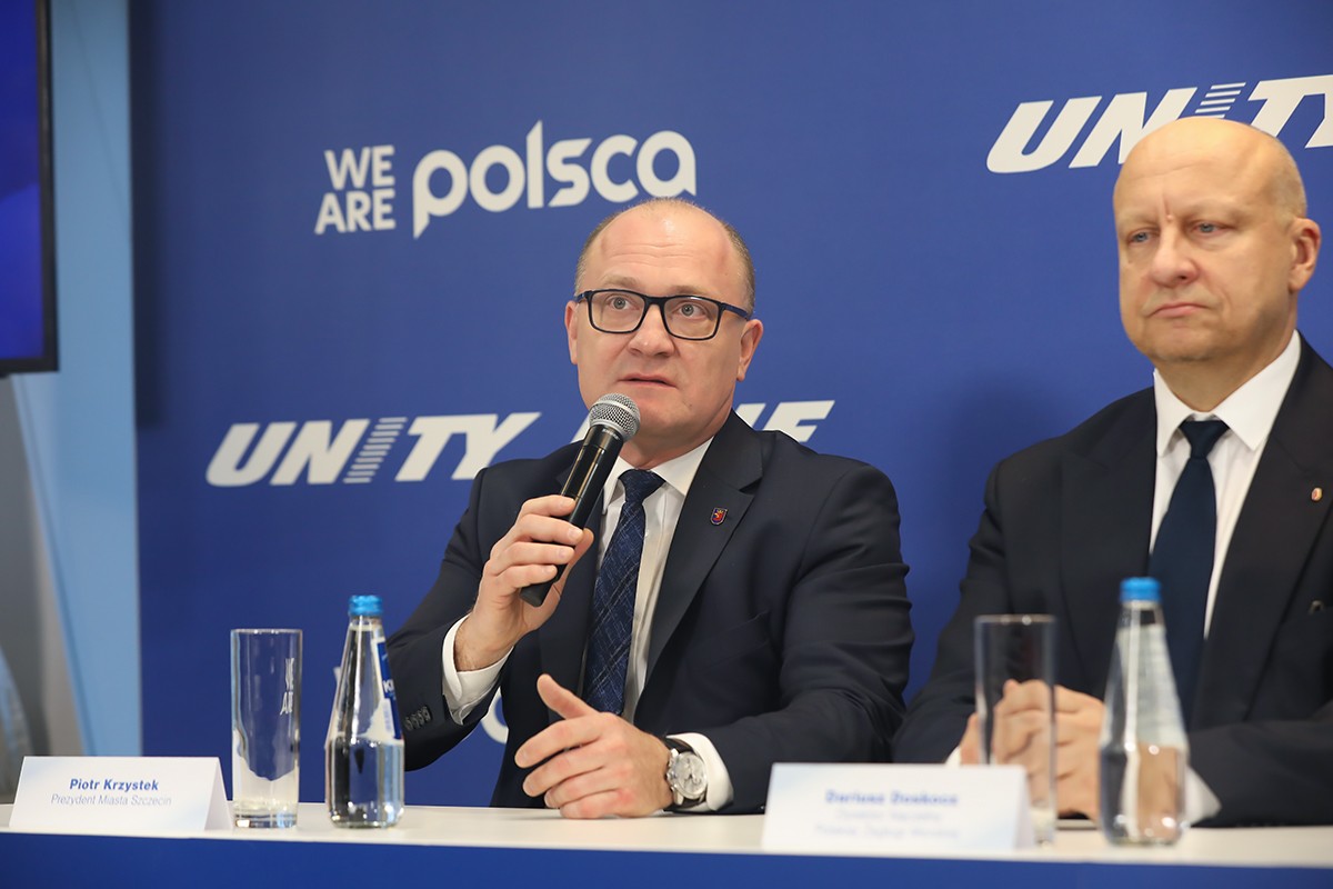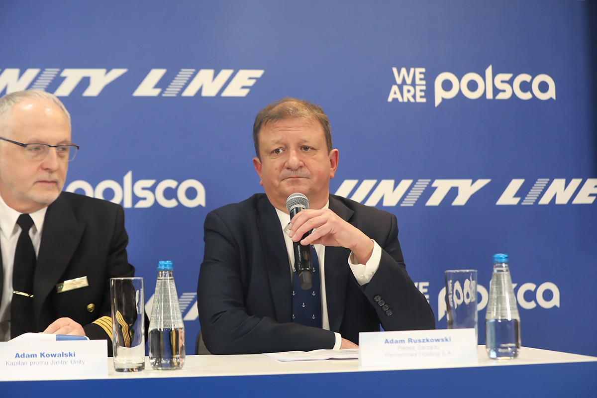 Największy prom, zbudowany w polskiej stoczni i dla polskiego armatora. O szczegółach tego projektu mówiono podczas konferencji prasowej na pokładzie Jantara Unity w Szczecinie (17.01.2026 r.)