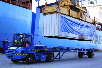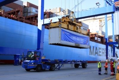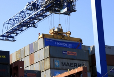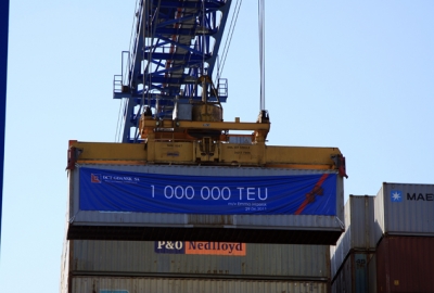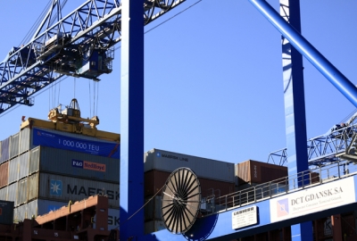 Praca terminalu kontenerowego DCT w Gdańsku.