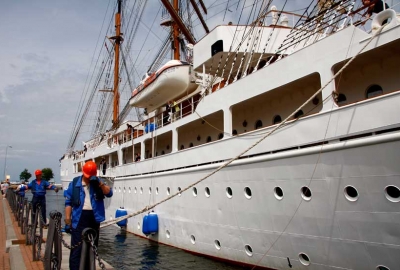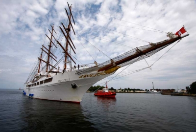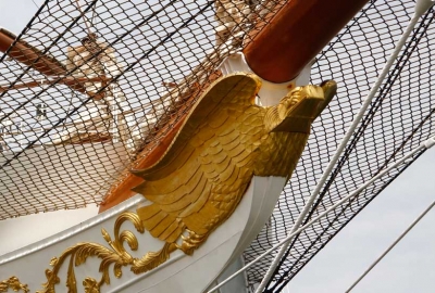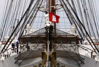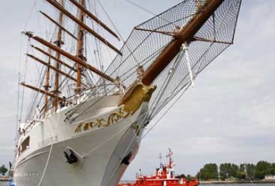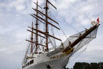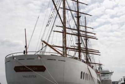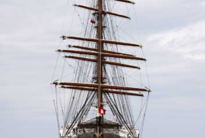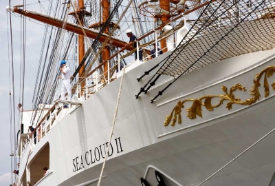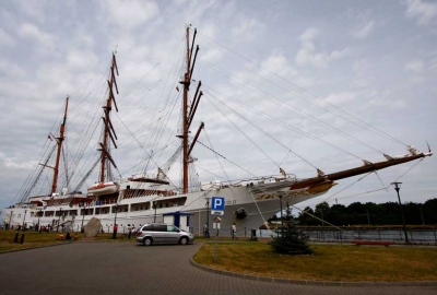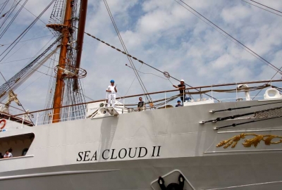 Sea Cloud II - Gdańsk 22.06.08 r. (żaglowiec - liczba żagli - 24, powierzchnia żagli - 2800 m2, najwyższy maszt - 58 m, liczba pasażerów - 94, liczba załogi - 58, tonaż statku - 3849 ton, długość - 381' (ok. 117 m), prędkość - 14 węzłów)