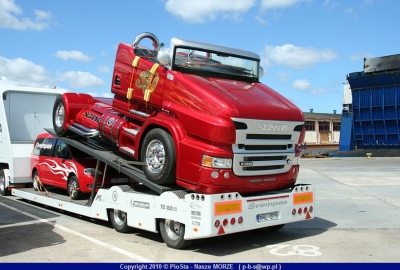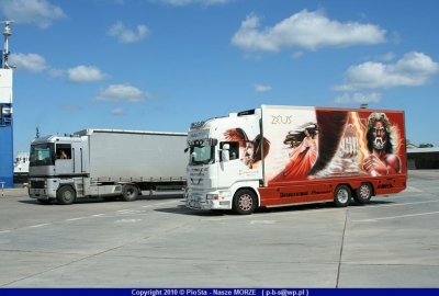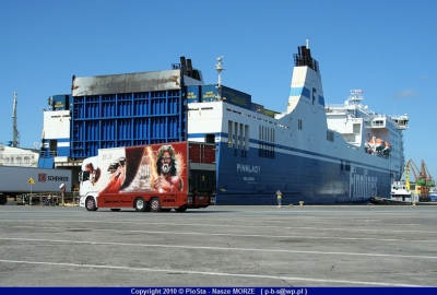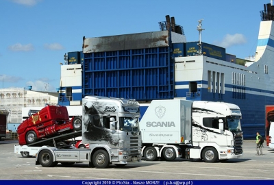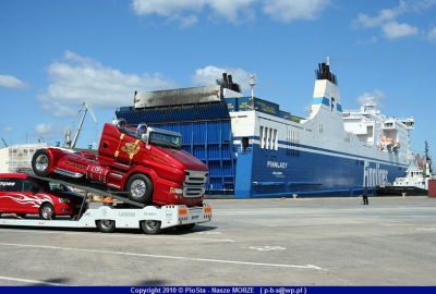 Niecodzienny ładunek obsłużono 7 lipca w Bałtyckim Terminalu Drobnicowym Gdynia. Przy jednym z jego stanowisk ro-ro zacumował wielki ro-pax z serwisu promowego oferującego po trzy odejścia tygodniowo do Niemiec i Finladnii. Prom o nazwie Finnlady przywiózł tym razem do Gdyni nie tylko ładunki na trailerach i zwykłe, pracujące ciężarówki, ale również pojazdy ciężarowe, których głównym zadaniem jest spektakularnie się prezentować.