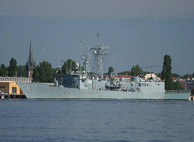 W Świnoujściu fregata zacumowała po zewnętrznej stronie półwyspu Kosa, przy nabrzeżu zmodernizowanym w ramach projektu przebudowy świnoujskiej bazy i przystosowania jej do standardów NATO. Wizyta jest swoistym „testem” nowego nabrzeża i przyległej, nowej infrastruktury.