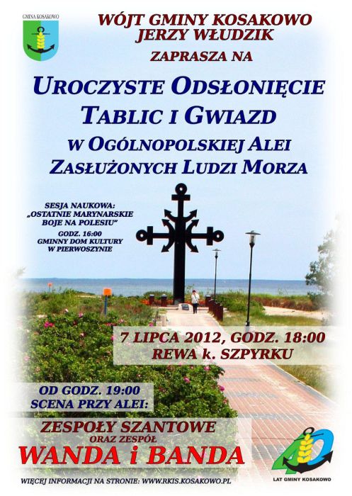 godz. 18 - Ogólnopolska Aleja Zasłużonych Ludzi Morza w Rewie