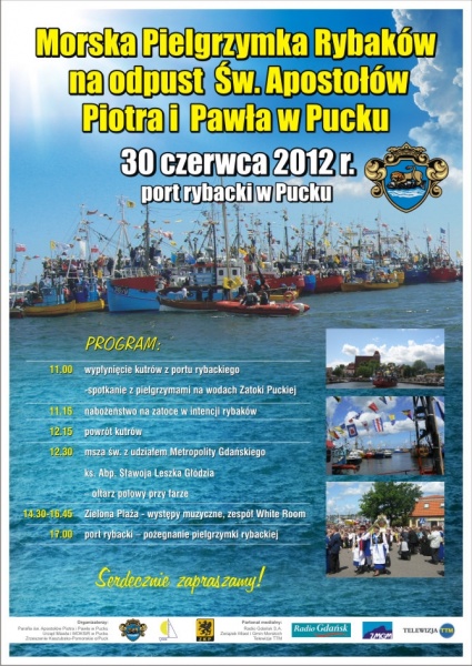 - godz. 11 - wypłynięcie kutrów z portu rybackiego w Pucku - spotkanie z pielgrzymami na wodach Zatoki Puckiej