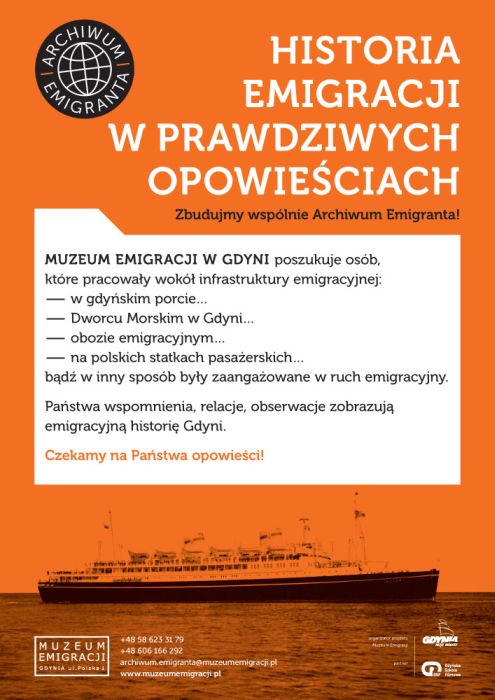 Osoby, które chciałyby podzielić się swoją historią, proszone są o kontakt z Muzeum Emigracji w Gdyni pod nr. Tel. 48 58 623 31 79, +48 606 166 292, bądź drogą mailową na adres: Ten adres pocztowy jest chroniony przed spamowaniem. Aby go zobaczyć, konieczne jest włączenie w przeglądarce obsługi JavaScript..