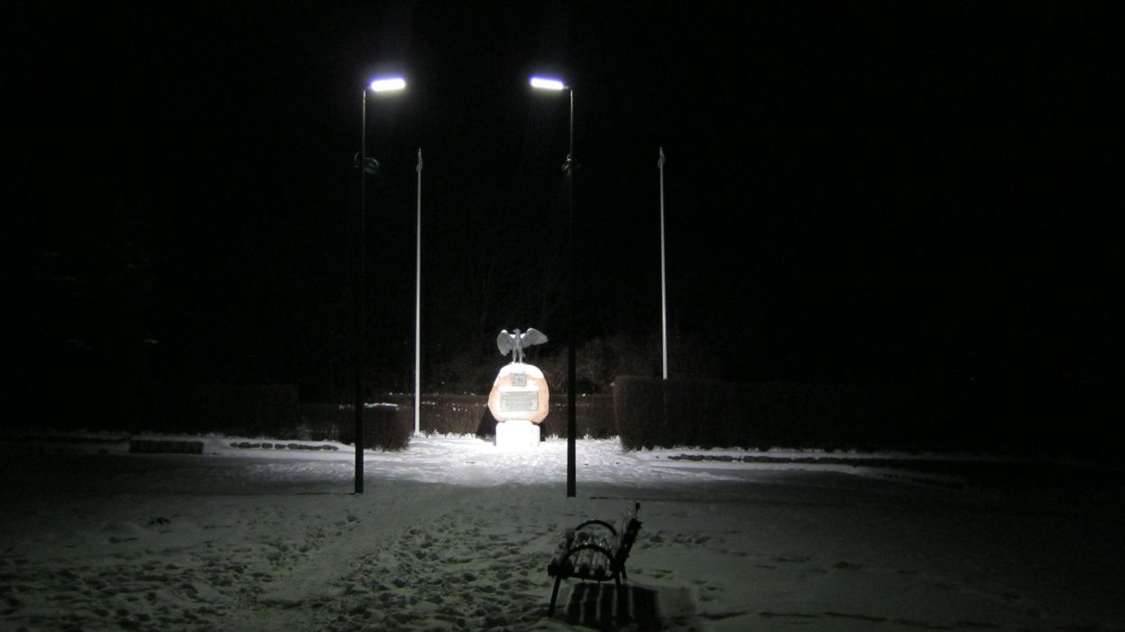 Iluminację stanowią dwa, umieszczone na latarniach, reflektory. Dzięki zastosowaniu w oprawach oświetlających dojście do pomnika ledowych diód, ograniczono zużycie energii elektrycznej. Koszt inwestycji łącznie z projektem wyniósł około 27,5 tysiąca złotych.