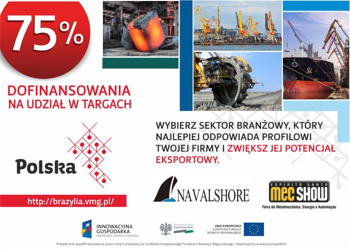 Dzięki Programowi Promocji Polskiej Gospodarki na Świecie przedsiębiorcy, którzy wezmą udział w targach mogą uzyskać nawet 75% dofinansowania z Ministerstwa Gospodarki na udział w targach branżowych NAVALSHORE 2013. Zapisy tylko do 15 maja!
