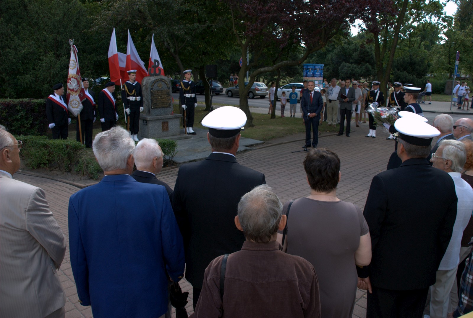 O godzinie 12:00 na skwerze Kościuszki w Gdyni, marynarze i delegacje złożyli wiązanki kwiatów pod pomnikiem żołnierzy Armii Krajowej.
