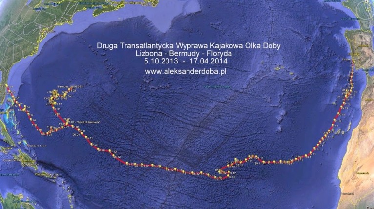 Trzy lata wcześniej Aleksander Doba przepłynął Atlantyk tym samym kajakiem. Dokonał tego w 99 dni na trasie z Dakaru do wybrzeża Brazylii.