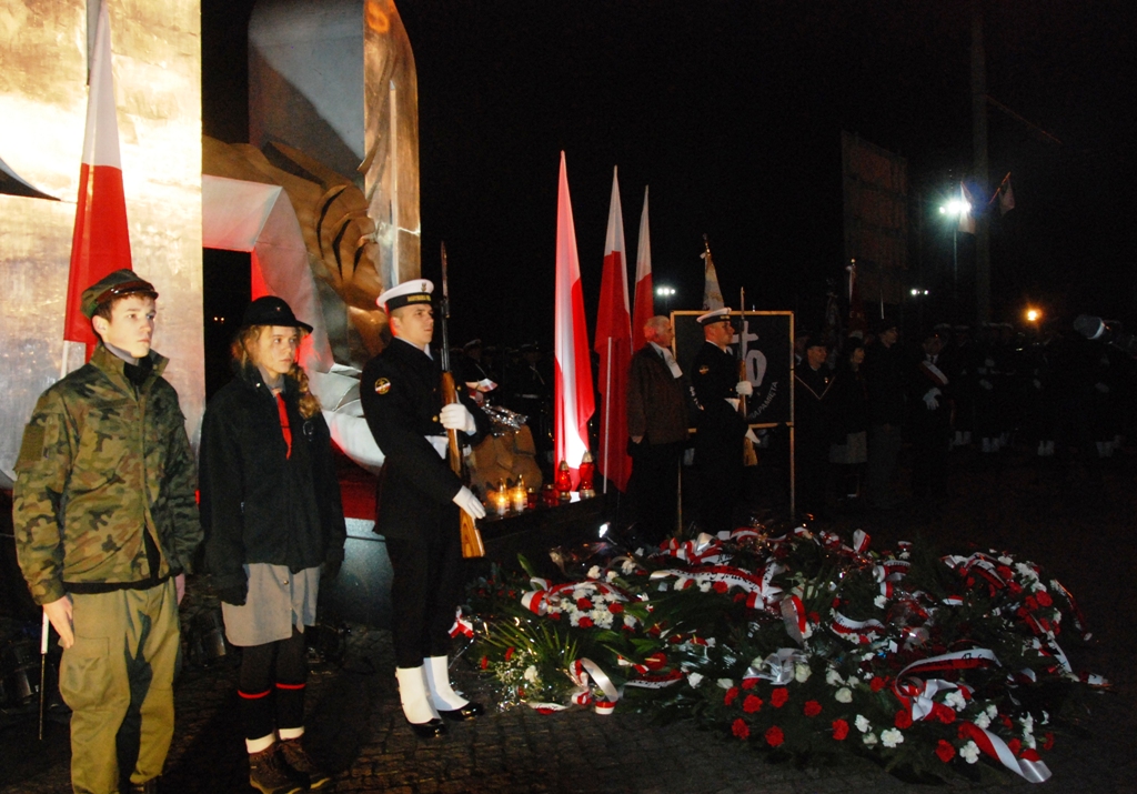 Salwa honorowa oddana przez Kompanię Reprezentacyjną Marynarki Wojennej oraz Apel Poległych poświęcone były 18 stoczniowcom, którzy w wydarzeniach grudnia 1970 ponieśli śmierć w Gdyni.