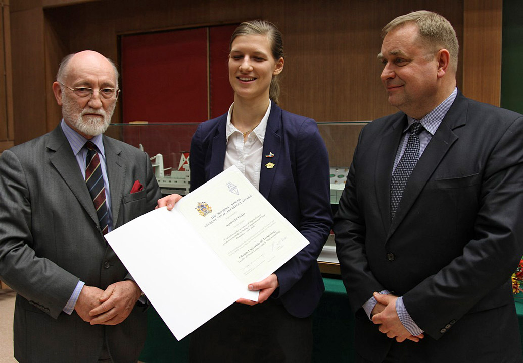 Komisja złożona z przedstawicieli TOP Korab i RINA przyznała nagrodę "The 2015 RINA-Korab Student Naval Architect Award mgr inż. Agnieszce Piekło za pracę pt. "Ocena dokładności metod prognozowania oporu statku z wykorzystaniem Numerycznej Mechaniki Płynów na podstawie wybranego przypadku".
