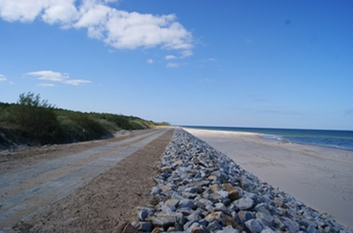 Konstrukcje ochronne brzegu morskiego zabezpieczają nie tylko walory przyrodnicze na tym terenie, wydmy, roślinność oraz naturalne lęgowiska ptaków, ale również obiekty infrastruktury wojskowej o strategicznym znaczeniu dla funkcjonowania poligonu.