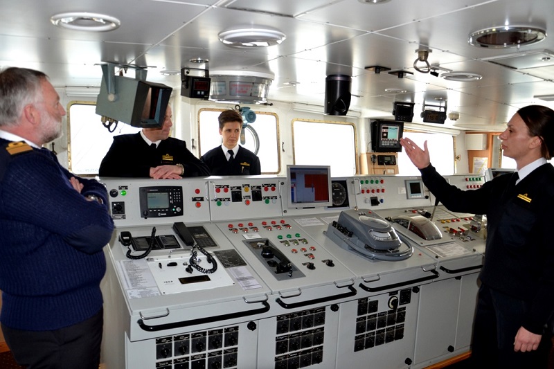 Dowódca okrętu, kmdr ppor. Artur Grządziel, wraz z podległą kadrą zaprezentował Admirałowi Tim Lowe etatowy sprzęt hydrograficzny i nawigacyjny. Spotkanie na okręcie zakończyło się pamiątkowym zdjęciem oraz uroczystym obiadem, w trakcie którego wymieniono własne spostrzeżenia i doświadczenia hydrograficzne.