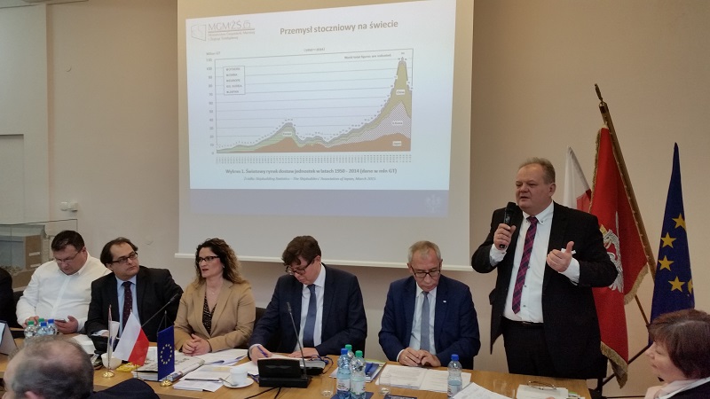 Sesję rozpoczęto od przemysłu okrętowego. Warunki makroekonomiczne i prawne wprowadzenia polityki wspierającej rozwój polskiego przemysłu stoczniowego omówił szeroko Paweł Brzezicki. Jednak zarówno na sali obrad, jak i w kuluarach, unikał podawania szczegółów przygotowywanego rządowego programu dla stoczni, pozostawiając to na oficjalne jego ogłoszenie, prawdopodobnie w marcu.