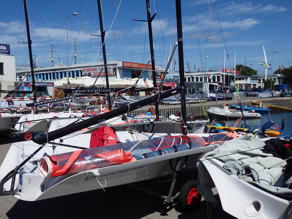 Pierwszego dnia (7.07.) miały wystartować "twenty nainery" czyli bardzo zgrabne łódki regatowe ale z kosztownym, delikatnym osprzętem. Klasa 29er. Od rana była piękna słoneczna pogoda, jednak solidnie wiało z zachodu. Zaplanowany na godzinę 12 start do pierwszej konkurencji XVII Volvo Gdynia Sailing Days został więc odwołany.