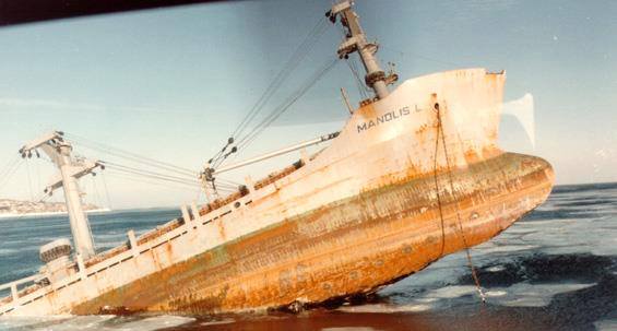 Statek towarowy Manolis L, 17 stycznia 1985 roku transportując prawie 3000 ton papieru gazetowego, uderzył w skaliste dno, po czym zatonął. Obecnie znajduje się na głębokości około 60 metrów. Mówi się, że w chwili zdarzenia w jego zbiornikach znajdowało się 60 ton oleju napędowego i 462 tony paliwa. Po wydarzeniach sprzed 31 lat zaobserwowano niewielki wyciek, ale jakiekolwiek kroki, w celu jego usunięcia, były niemożliwe ze względu na panujące tam ekstremalne warunki pogodowe.