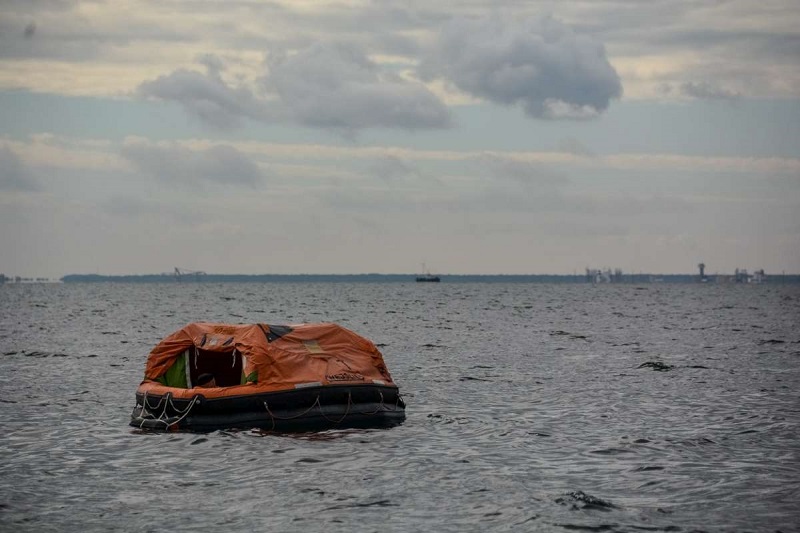 Długotrwałe przebywanie w indywidualnych i zbiorowych środkach ratunkowych to także obowiązkowe szkolenie, jakie odbywają załogi okrętów w ramach zajęć z ratownictwa morskiego.