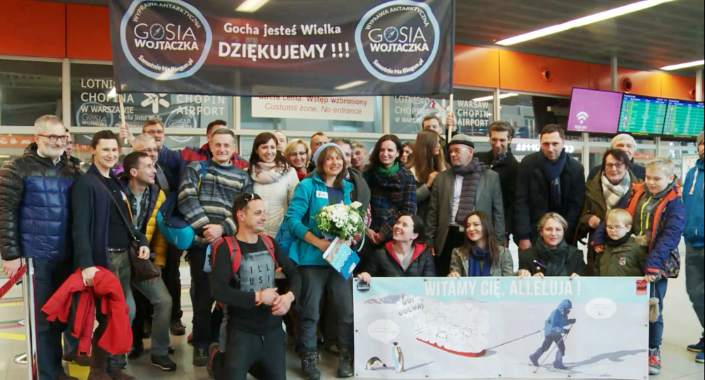 31 stycznia 2017, w południe  - po wielogodzinnym locie, najpierw z Antarktydy, a potem z Patagonii - Małgorzata Wojtaczka powróciła do Warszawy. Na Lotnisku Chopina czekała aktywna grupa przyjaciół i dziennikarzy. Gocha trochę zdziwiona, trochę zmęczona, ale bardzo zadowolona z dotarcia do Bieguna Południowego i ukończenia projektu.
