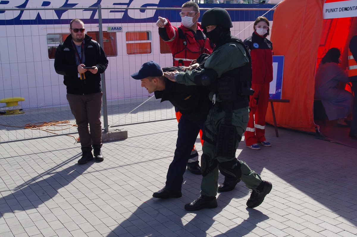 Na Bałtyku terroryści opanowali prom pasażerski i kuter rybacki. Do akcji wkraczają funkcjonariusze Morskiego Oddziału Straży Granicznej i sił specjalnych, którzy uderzeniem z wody i powietrza opanowali uprowadzone jednostki - tak wyglądał scenariusz ćwiczenia taktyczno-specjalnego z zakresu reagowania kryzysowego pod kryptonimem "Kaper 17", które odbywało się w dniach 24-25 maja w Kołobrzegu.