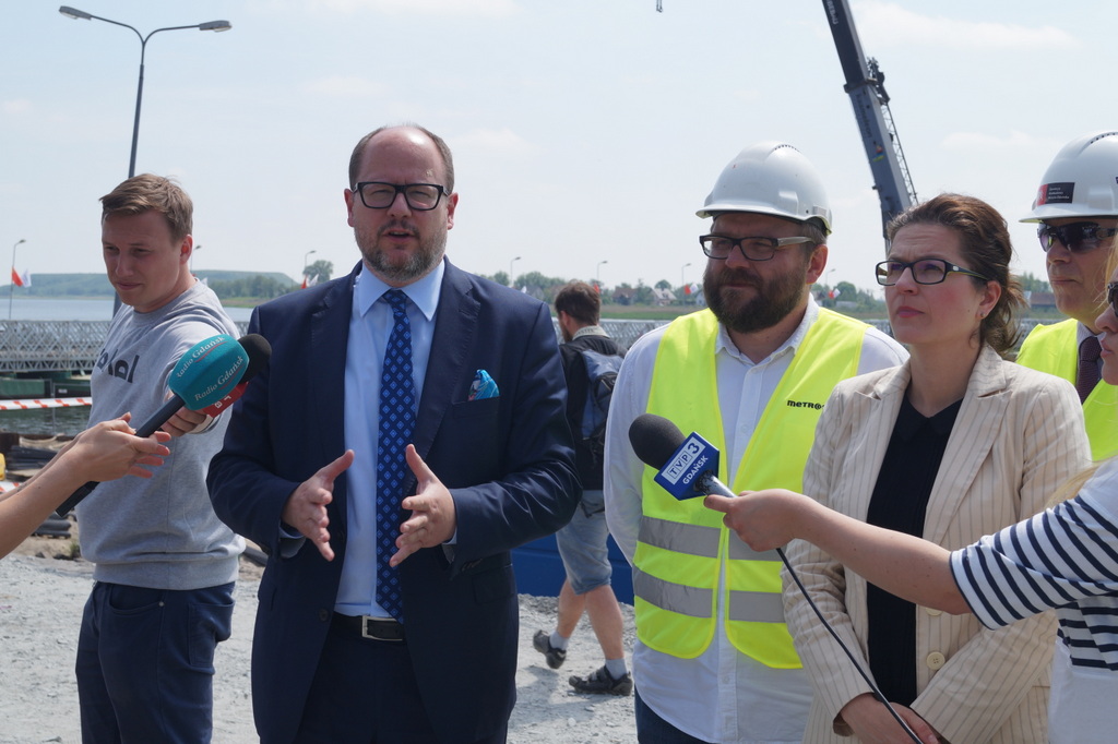 30 maja postęp prac na budowie zwodzonego mostu w Sobieszewie oceniał prezydent Gdańska Paweł Adamowicz wraz z z-cą ds. polityki gospodarczej Aleksandrą Dulkiewicz.