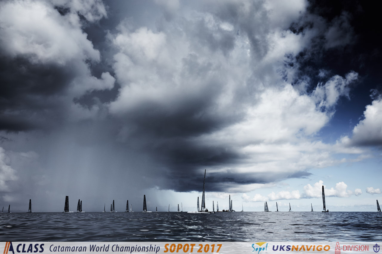 Drugi dzień Mistrzostw Świata Katamaranów A-Class Sopot 2017 ze względu na burze zakończył się bez wyścigów, tak więc eliminacje do grup złotej i srebrnej jeszcze nie są zakończone.