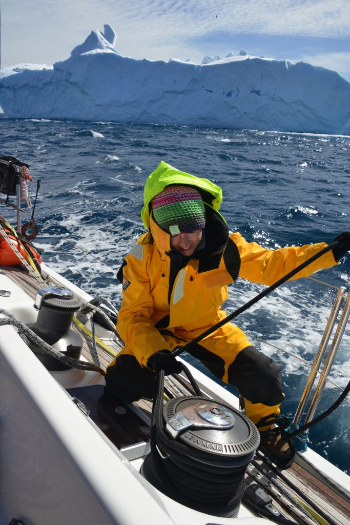Wiatr zacinał śniegiem dotkliwie smagając twarze załogi pracującej na pokładzie. Pomimo gogli i kominiarek dotkliwe zimno dopadało każdego. Cierpły od chłodu dłonie. Tylko gumowe rękawice nie przepuszczały wilgoci. Sztormiaki zastąpiliśmy jednoczęściowymi kombinezami (żółte Musto), skutecznie chroniącymi przed przelewającymi się przez pokład falami. Dookoła jachtu sporo gór lodowych i okruchów lodu. Wszystko trzeba wypatrywać i omijać. Sztormowy wiatr spychał jacht w bok i utrudniał manewry dodając do naszego kursu ponad 30 stopni dryfu.