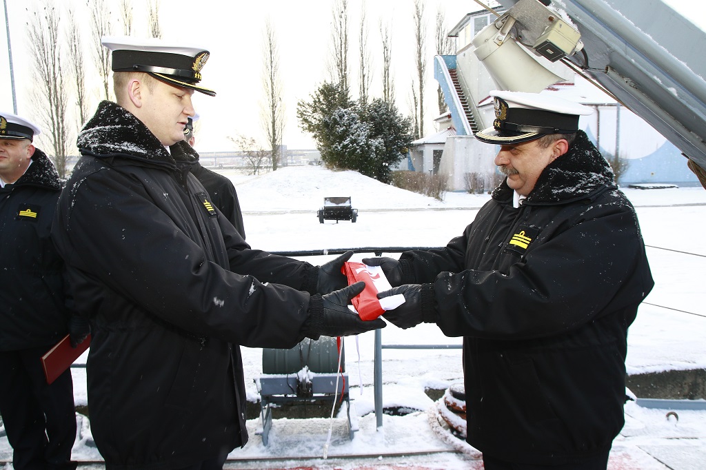 Gratulując nowego stanowiska, dowódca dywizjonu złożył nowemu dowódcy okrętu życzenia wszelkiej pomyślności, sukcesów w realizacji celów oraz zgodnie z marynarską tradycją "stopy wody pod kilem". Kapitan marynarki Marek Turek podziękował dowódcy dywizjonu za okazane mu zaufanie oraz obiecał pełnić funkcję dowódcy okrętu rzetelnie i odpowiedzialnie.