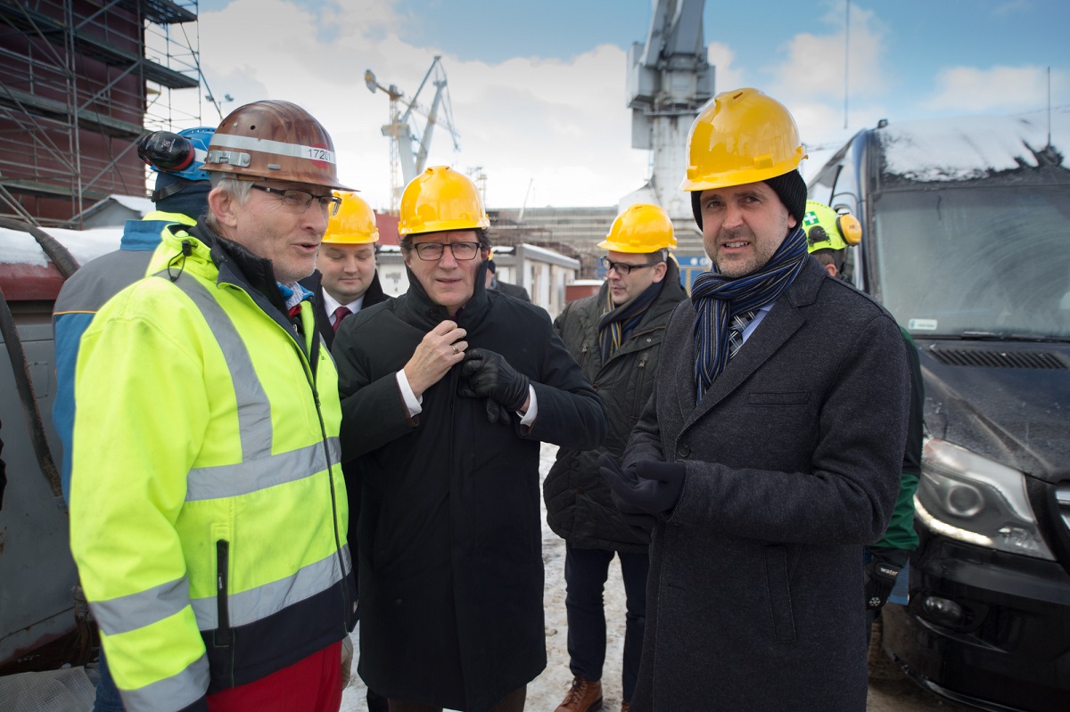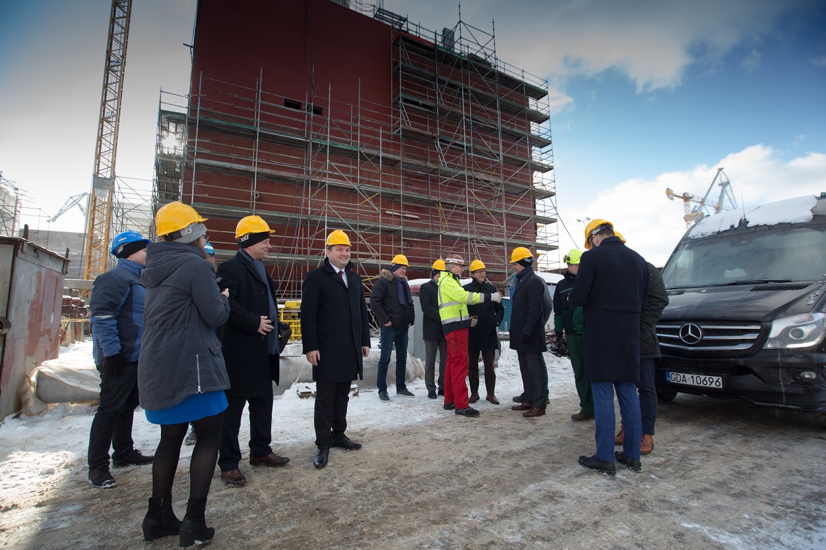 Minister rybołówstwa i akwakultury Republiki Islandii - Kristian Tor Juliusson odwiedził wczoraj stocznię Crist SA. Zobaczył m.in. budowany w stoczni hybrydowy prom pasażersko-samochodowy dla Islandzkiego Urzędu Transportu Drogowego.