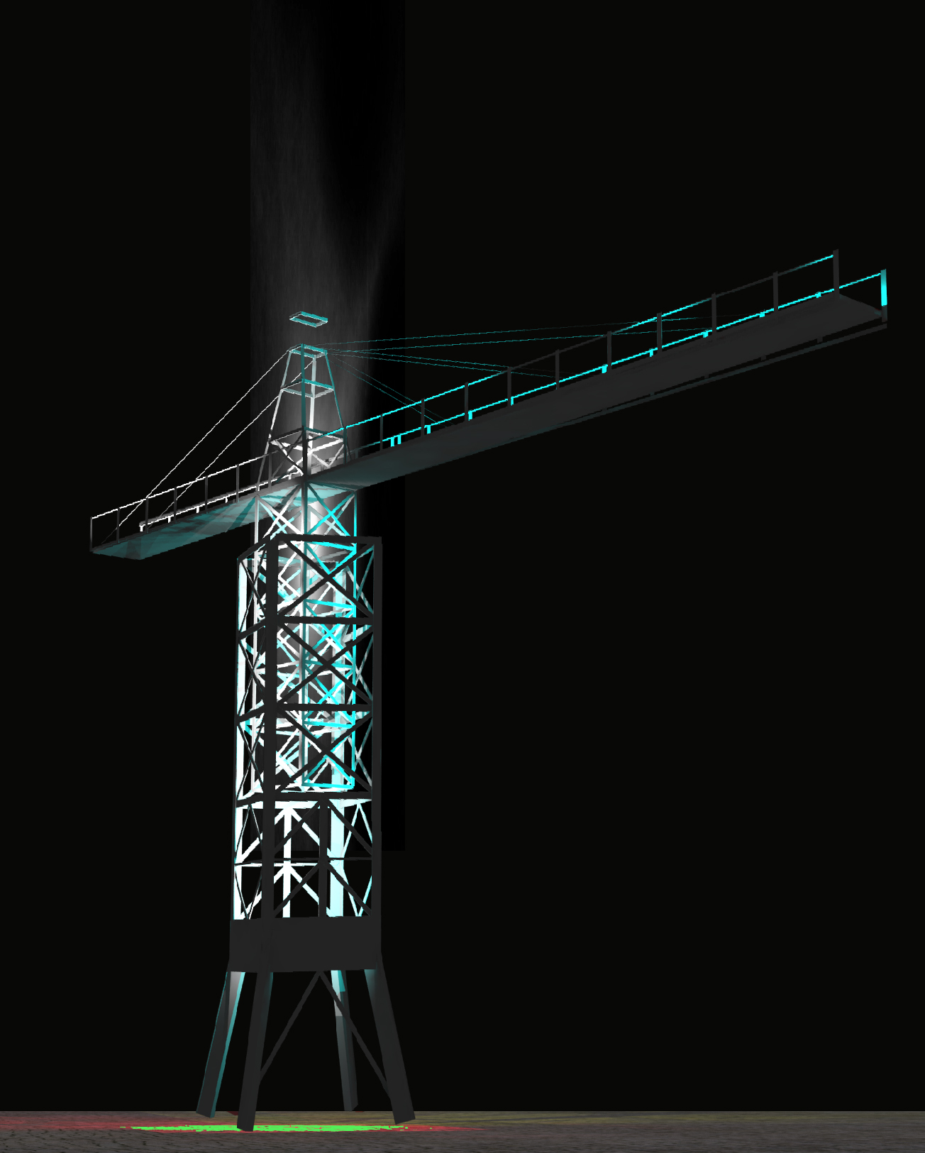 Konkurs na podświetlenie dźwigu stoczniowego został ogłoszony w połowie marca. Sąd konkursowy z 24 zgłoszonych koncepcji wybrał 5 prac do drugiego etapu. Następnie odbyły się spotkania z wybranymi autorami, którzy do 8 maja dostarczyli uzupełnione prace. 11 maja odbyło się spotkanie rozstrzygające.