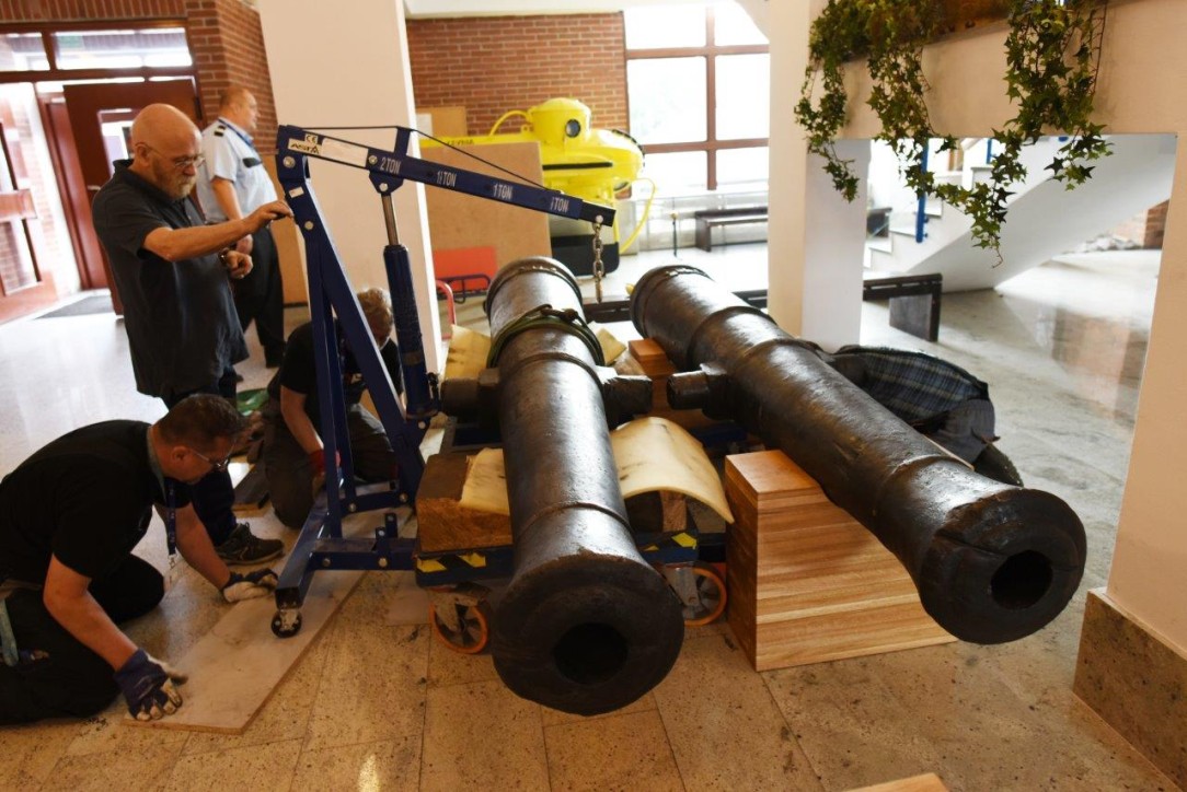Imponujące, żeliwne działa z XVIII wieku są od dzisiaj jednym z nowych elementów wystroju holu w siedzibie głównej Narodowego Muzeum Morskiego w Gdańsku – Spichlerzach na Ołowiance.