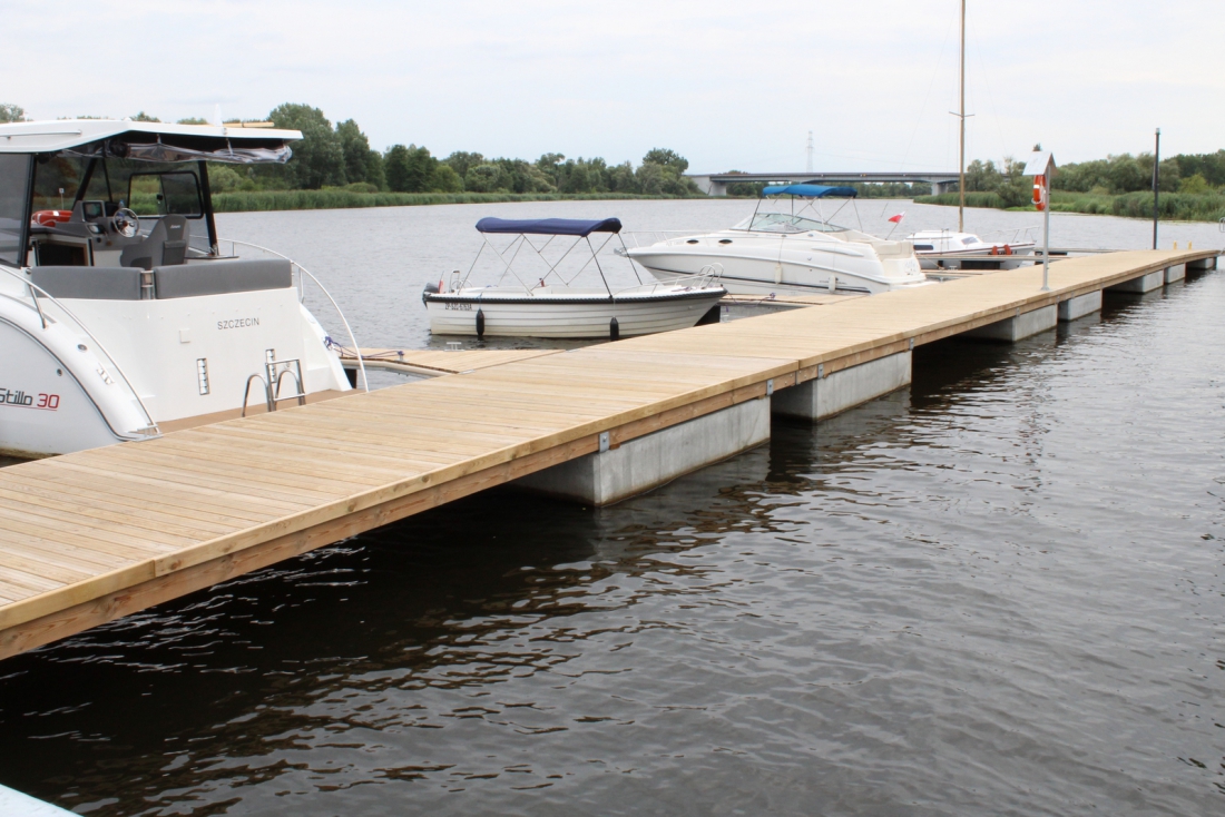 Prace przy budowie przystani trwały od września 2017 roku i kosztowały około 4 mln zł. Władze gminy szacują, że z nowej infrastruktury skorzysta dużo więcej osób niż dotychczas. Inwestycja, która otrzymała unijną pomoc Marszałka Województwa z wysokości 2,1 mln zł, wpisuje się w założenia 4 Osi Priorytetowej RPO WZ 2014-2020 „Naturalne otoczenie człowieka”, działanie 4.9 „Rozwój zasobów endogenicznych”.